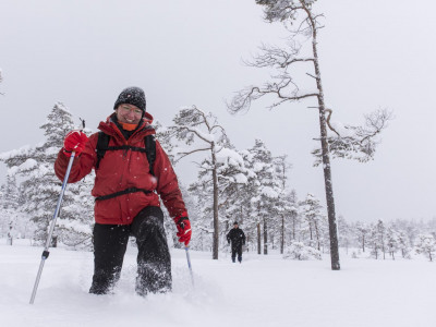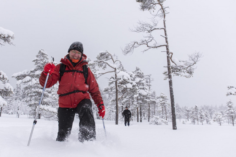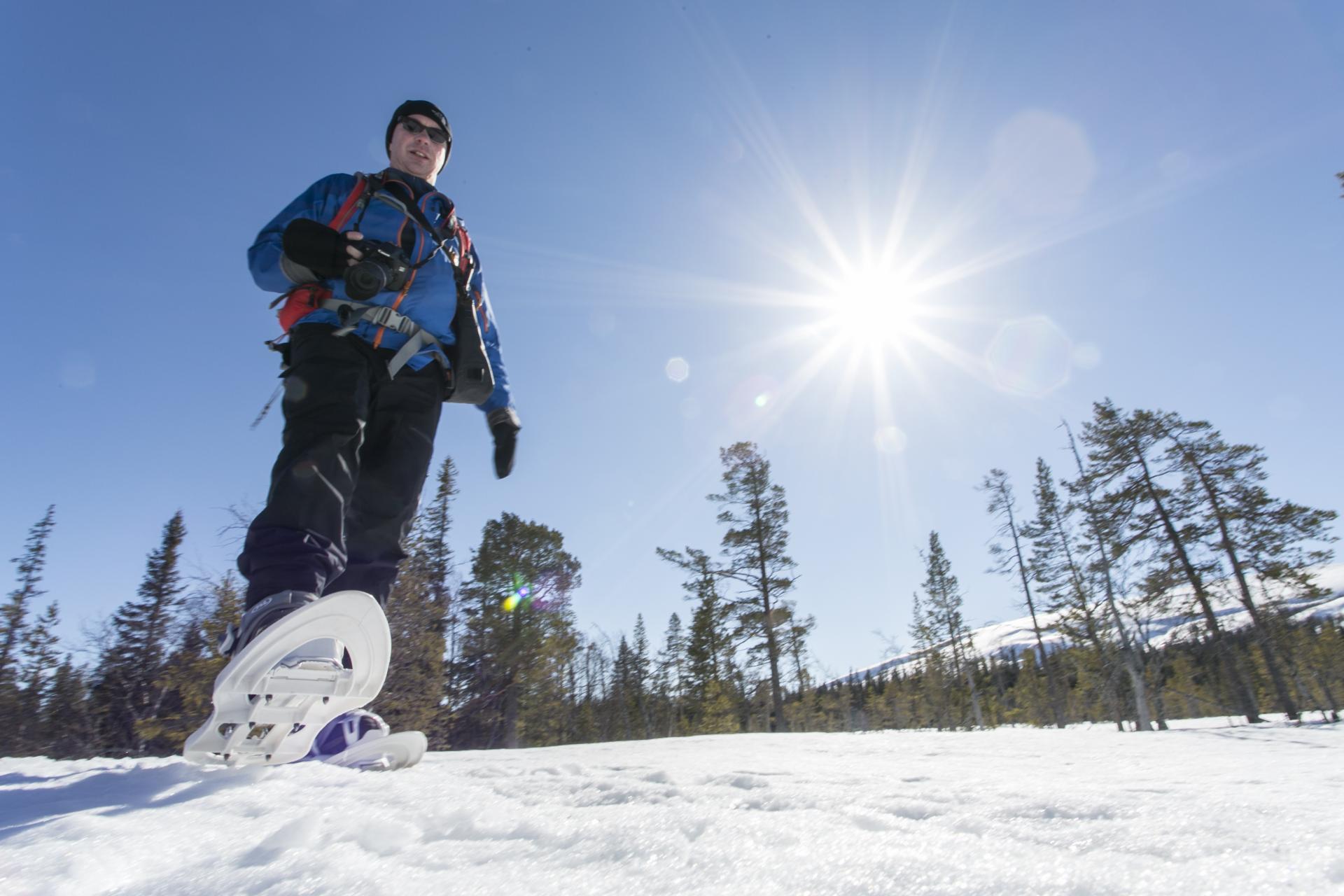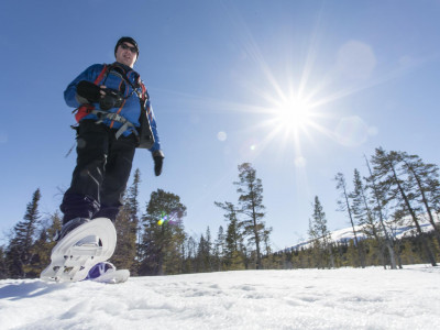 Sehr beliebt sind unsere Schneeschuhwanderungen. Die Umgebung ist dafür ideal. Wöchentlich organisieren wir zwei Touren, u.a. zum höchsten Wasserfall Schwedens, der im Winter völlig zugeeist ist und einen beeindruckenden Anblick bietet. Zu bestimmten Terminen haben wir zusätzlich Schwerpunkt-Wochen und viertägige sowie einwöchige Hüttenwanderungen im Programm. Weitere Infos auf Anfrage.