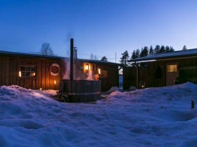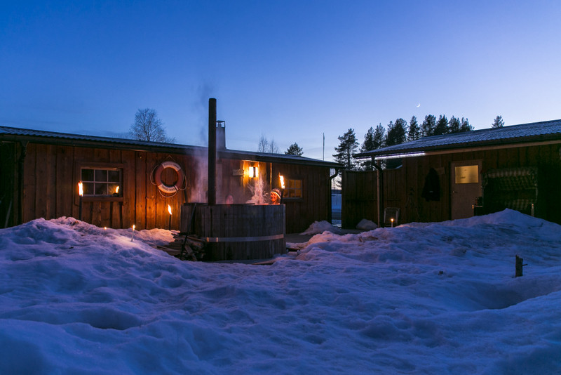 Auf Anfrage befeuern wir den Hot Tub, einen hölzernen Badezuber, in dem mehrere Personen Platz finden (125 SEK pro Person (ca. 12 Euro), mind. 8 Teilnehmer). Das warme Bad unter dem Sternenhimmel ist ein tolles Erlebnis, das man nicht so schnell vergißt.