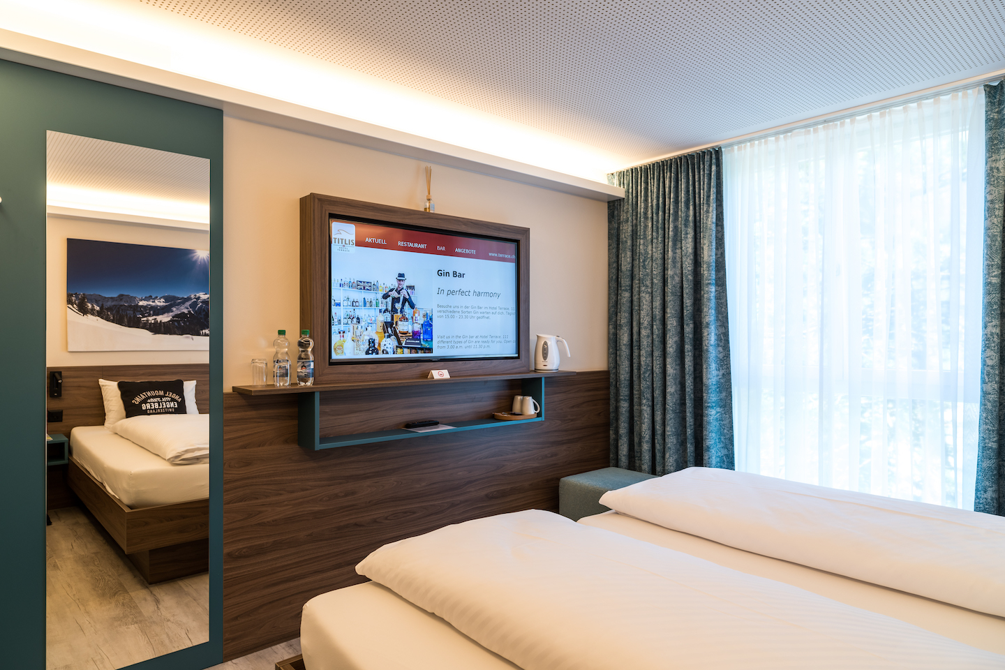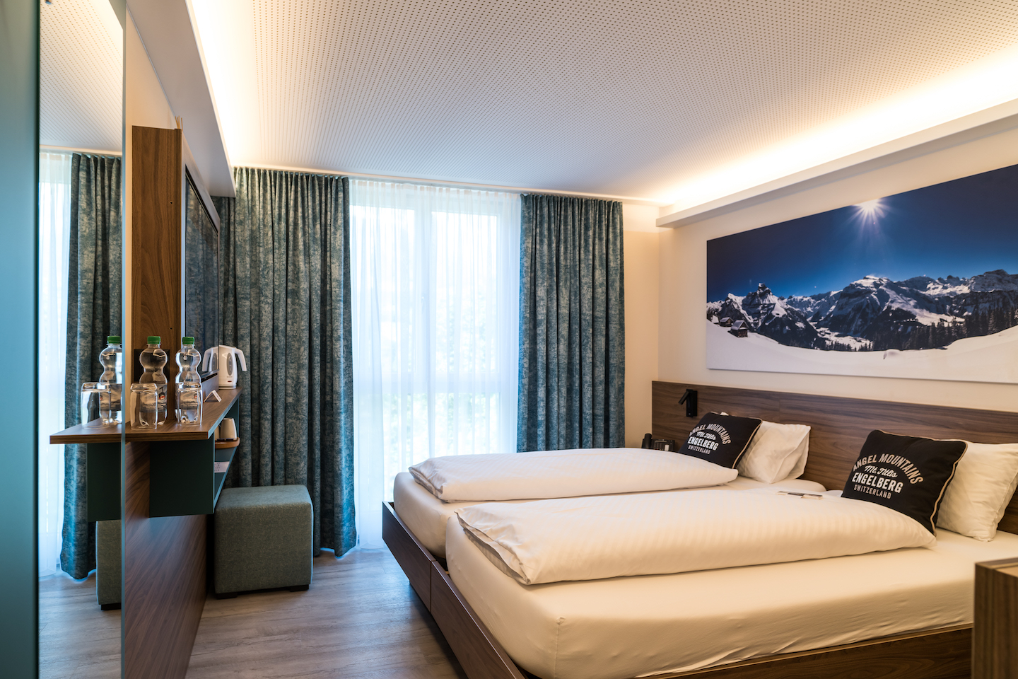 Mit viel Charme und Wohlfühlcharakter – so präsentiert sich unser im Jugendstil erbauter Sportclub Terrace. Das Haus liegt erhöht am Sonnenhang von Engelberg, aber: es braucht niemand den Hang hinauf laufen, denn ein Fahrstuhl, der direkt hinter dem Kurpark zu finden ist, bringt Euch geradewegs in das Hotel! Um ins Skigebiet zu gelangen, fahrt Ihr mit dem Fahrstuhl wieder ins Dorf hinunter, geht über den Kurplatz und könnt von dort aus mit dem kostenlosen Skibus zur Talstation fahren (ca. 5 min.)
