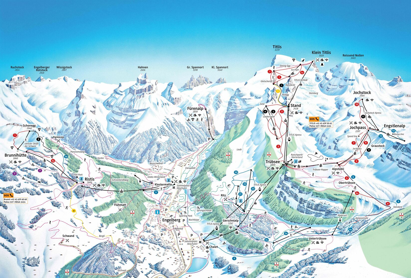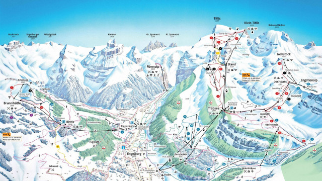 Dank des Gletschers, ist Euer Skiurlaub im Titlisgebiet (1000 – 3028 m) in Engelberg schneesicher bis weit in den Frühling. Euch erwartet ein Pistennetz von 82 km Kilometern Länge mit Skipisten unterschiedlicher Schwierigkeitsgrade – dabei sind die vielen unpräparierten Tiefschneehänge abseits der normalen Strecken nicht mit eingerechnet. Seid ihr startklar für die Talabfahrt: 12 km Piste mit 2000m Höhenunterschied? - da brennen die Oberschenkel!