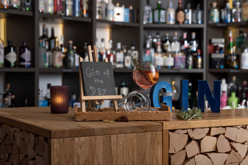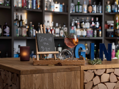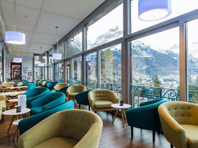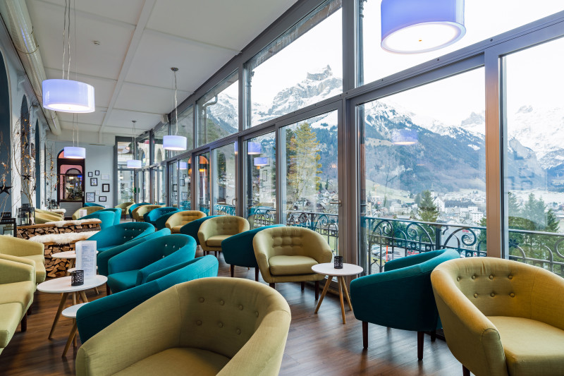 Angrenzend daran findet Ihr die stylische Porticos Gin Bar, in der Ihr aktuell die Qual der Wahl zwischen 250 Gin-Sorten habt, und den Wintergarten mit Terrasse - ein wunderschöner Logenplatz mit Blick auf die Bergwelt und den Ort Engelberg.