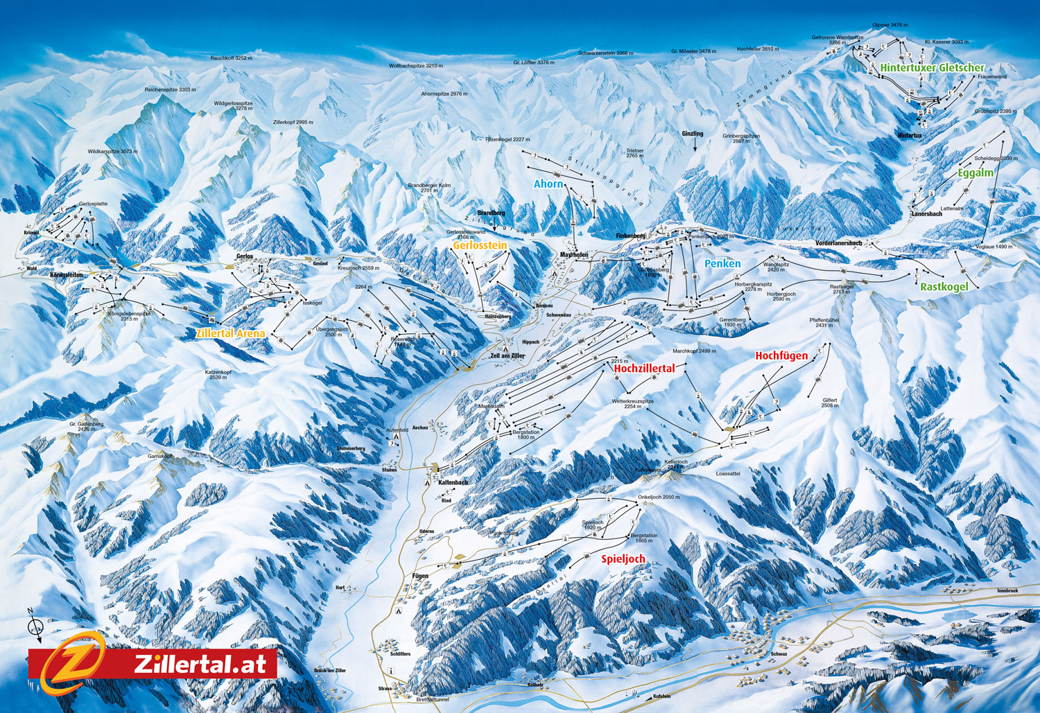 Mit dem Zillertaler Superskipass stehen Euch auch die Gebiete Zell am Ziller und Mayrhofen als Tagesziele offen und locken auf eine „Zillertaler Skisafari“ mit 542 Pistenkilometern.