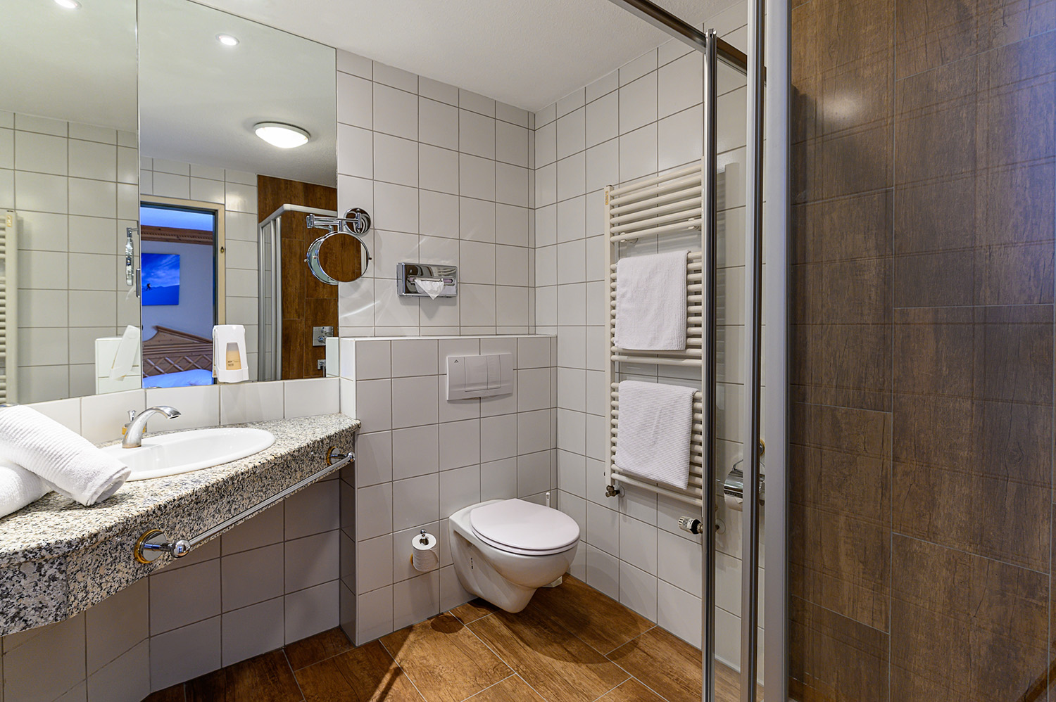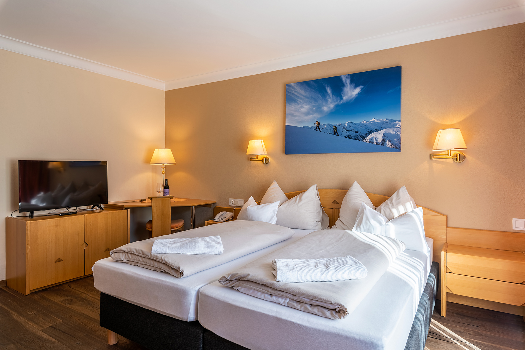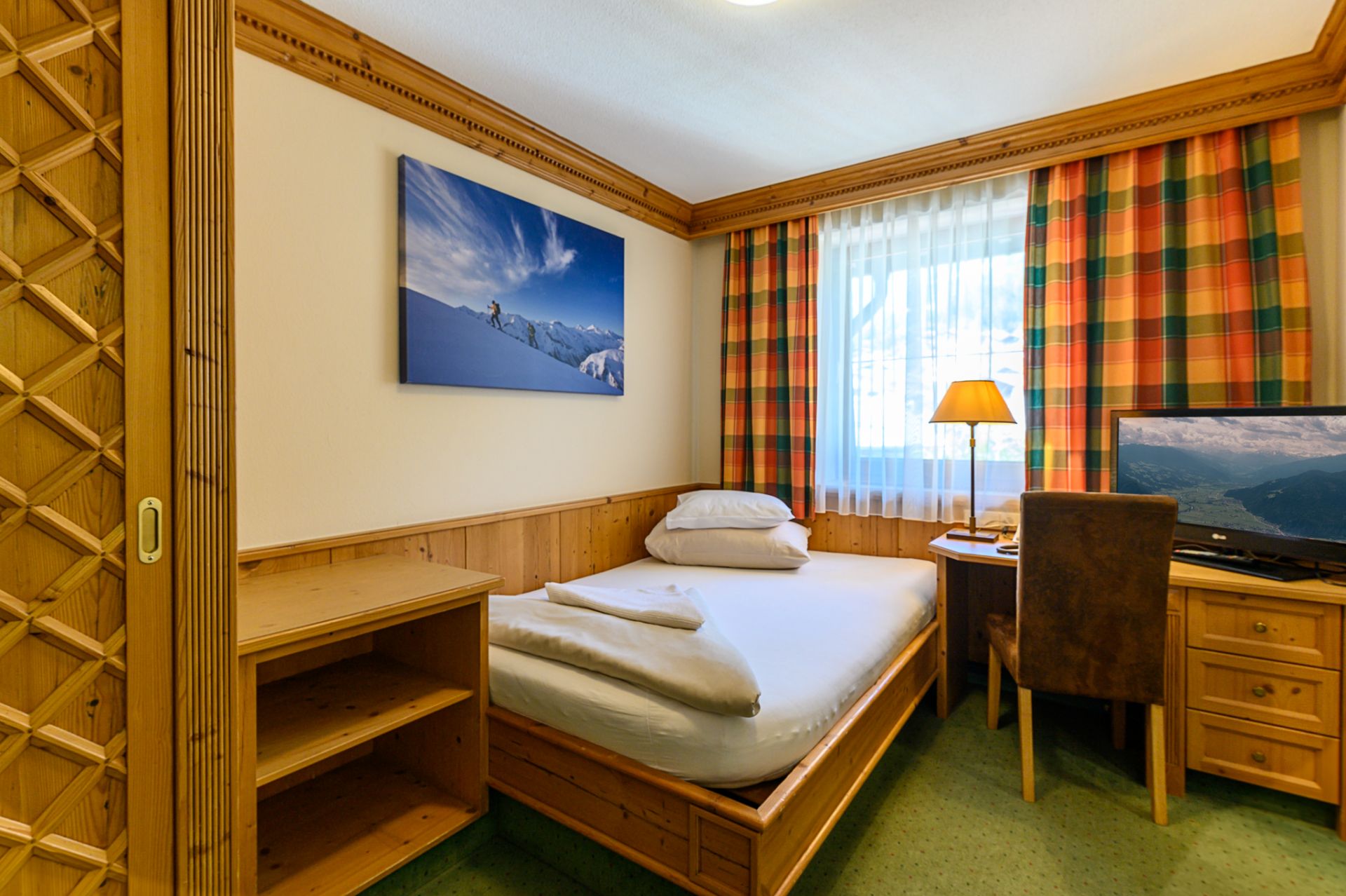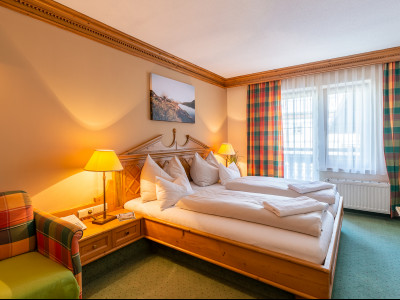 Kat. S (Typ Spieljoch): Doppel- und Mehrbettzimmer mit Bad o. Dusche/WC, Telefon, Sat-TV, Zimmersafe, Föhn und z. T. Balkon